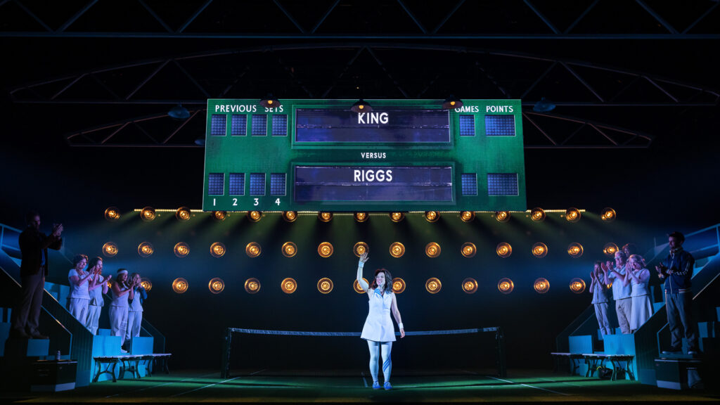 Chilina Kennedy plays Billie Jean; Dan Amboyer plays Larry King; Julia Antonelli plays Young Billie Jean and Elena Hurst plays Rosie Casals. The cast is rounded out by six women who play Woman One – Woman Six and two men who play Man One – Man Two.